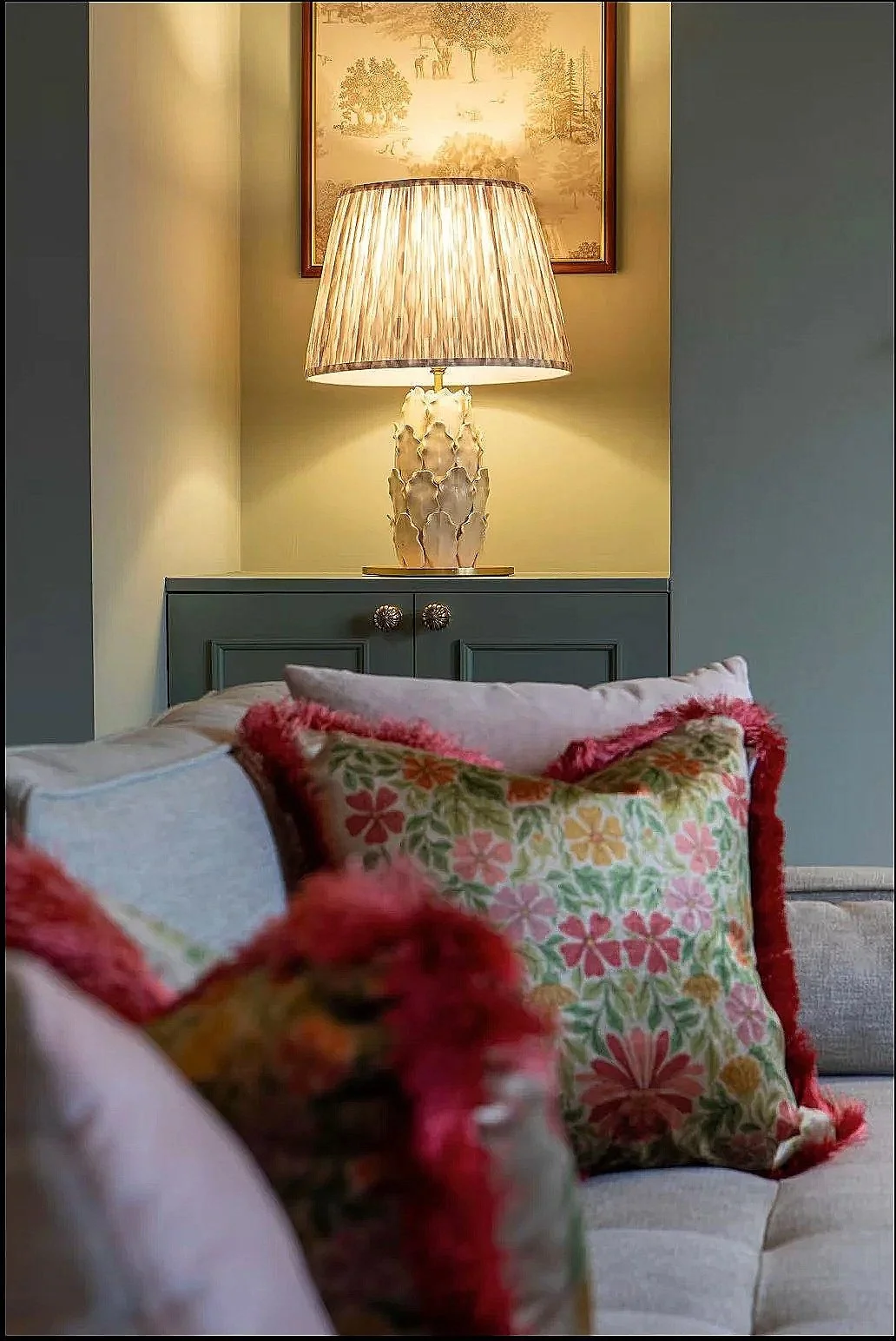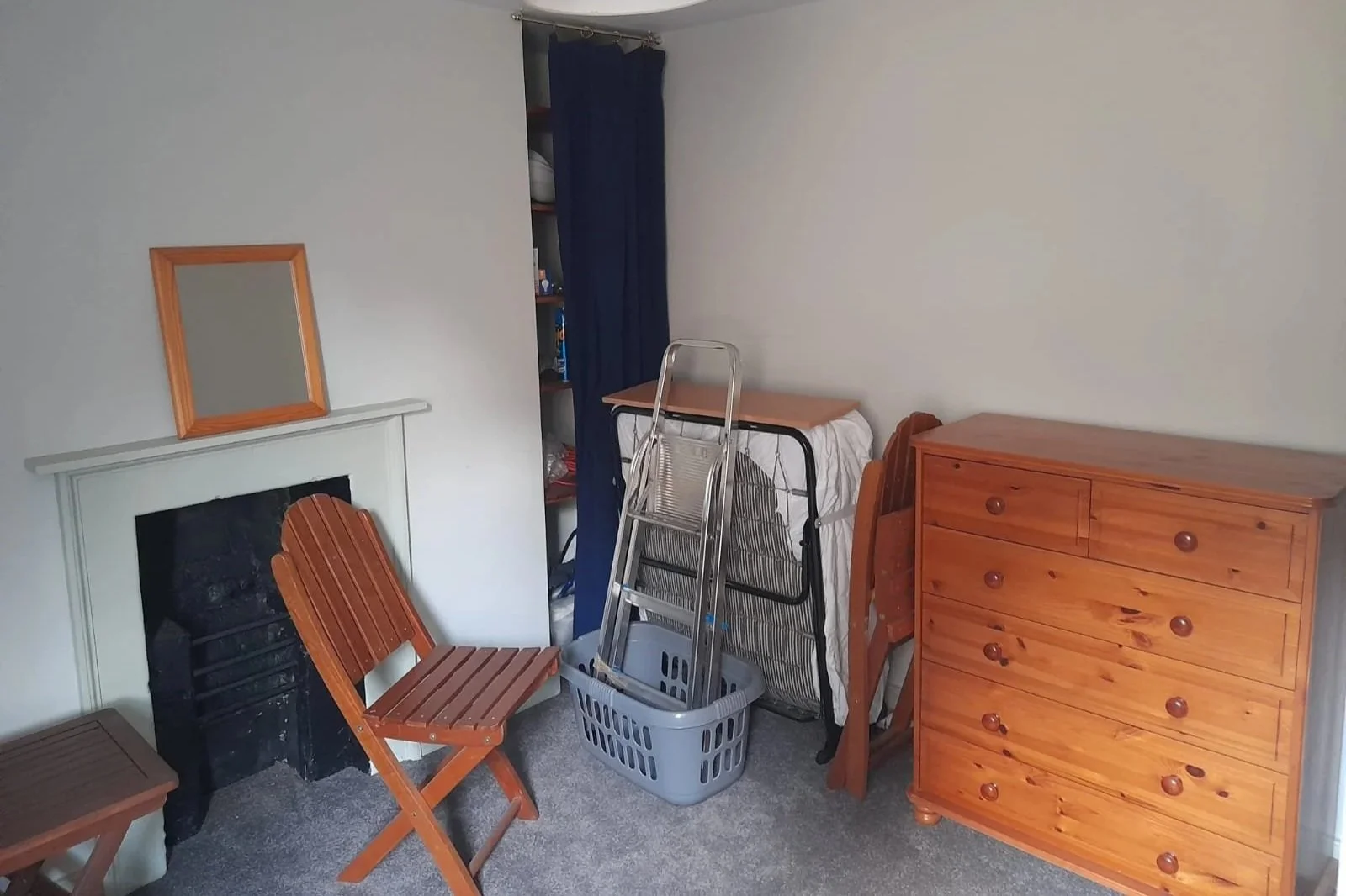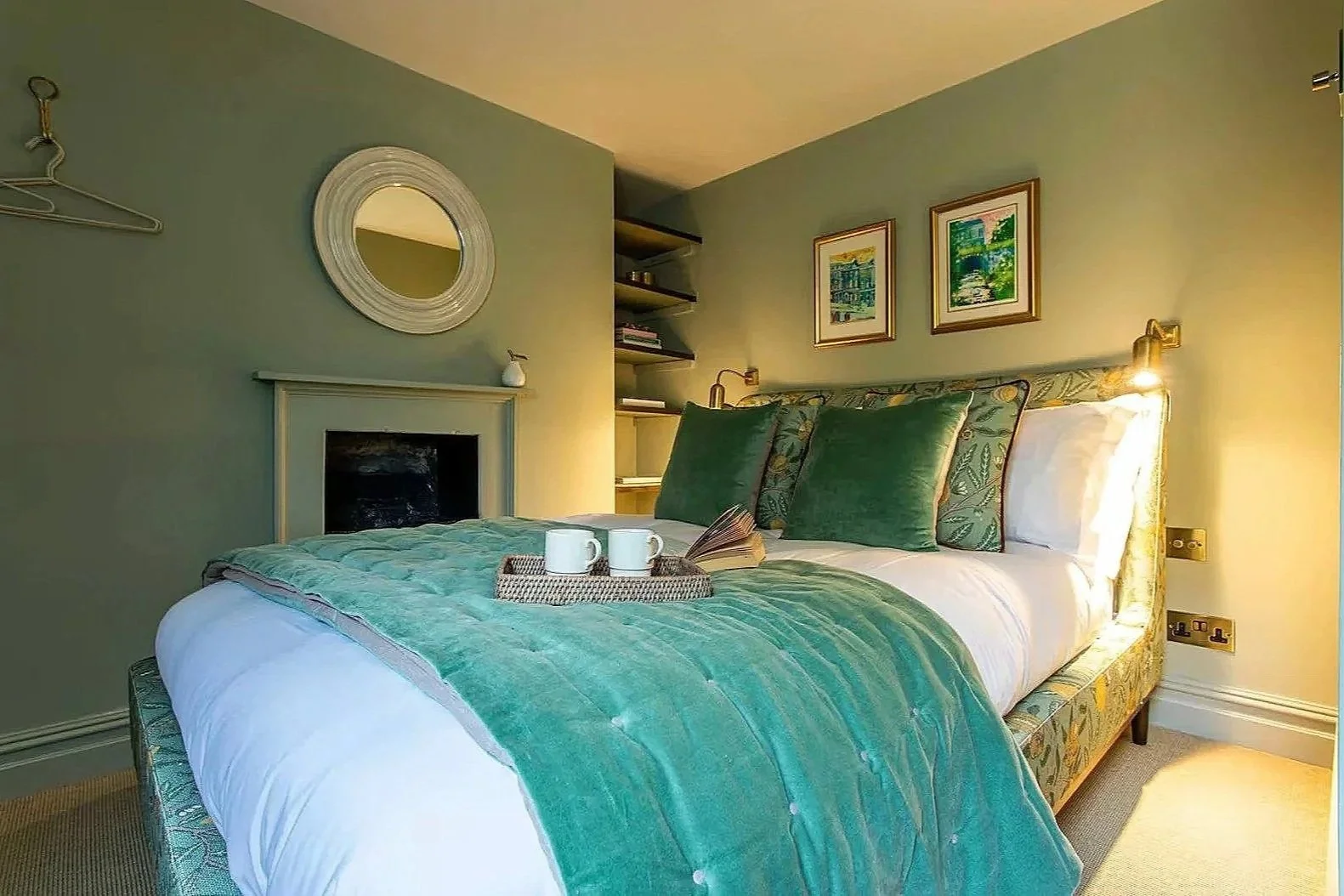 What was once an unused room filled with mismatched furniture became a comfortable, well-spaced guest bedroom through Sophie’s vision. Keeping original features such as the fireplace and shelving, she brought new life to the space with a bright, fresh design. A large double bed with textiles inspired by the headboard, paired with a turquoise throw that ties into the paintwork, creates a relaxed, beach-house feel while still keeping the room modern and refined.